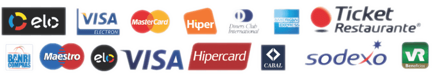 Aceite cartões de crédito, débito, vale-alimentação e refeição, Pix e QrCode